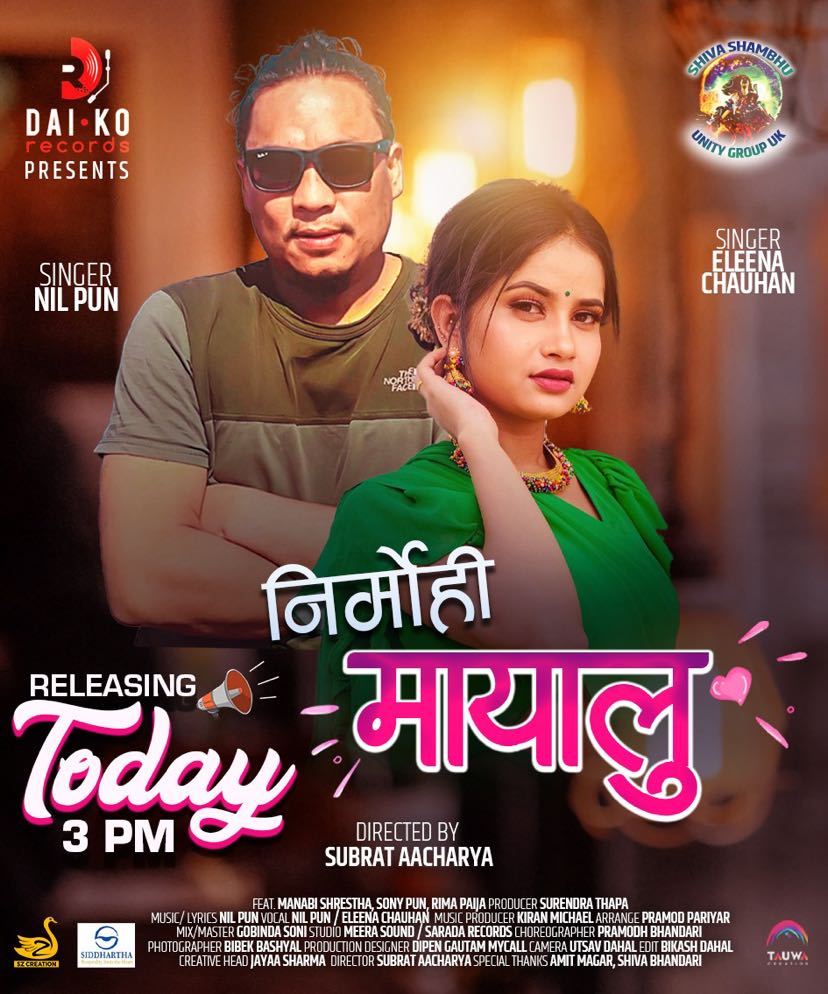 एलिना चौहान र नील पुनः को स्वर समावेश म्युजिक भिडियो ‘निर्मोही मायालु’ सार्वजनिक भएको छ । शुक्रबार दिउँसो युट्युव रिलिज गरिएको उक्त गीतमा शब्द र संगीत पनि पुनः को नै छ । संगीत निर्माणको काम किरण माइकल घिमिरेले गरेका छन् ।