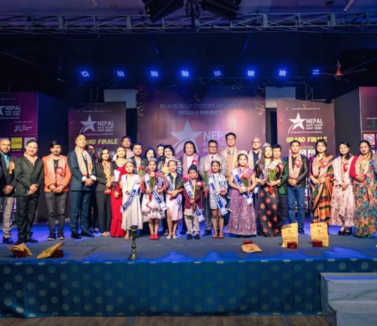 Lalitpur — The grand finale of “Nepal Kids Talent Hunt 2082,” organized by Black Bird Entertainment, was successfully and grandly held on Sunday, Chaitra 29, at Music City Hall, Balkumari, Lalitpur. After nearly two months of intensive training and competition, the top 20 finalists showcased their remarkable talents.